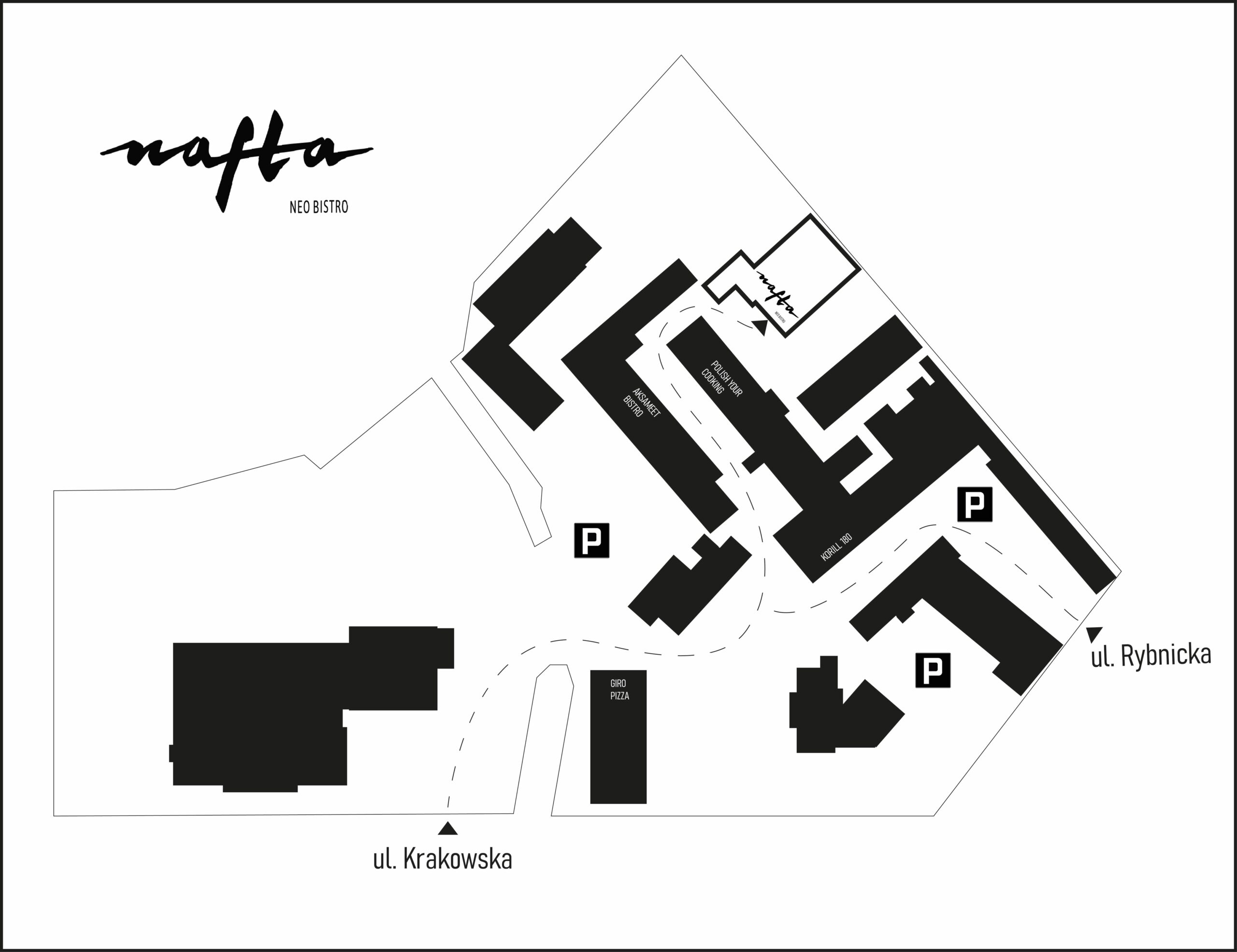 Nafta Neo Bistro znajduje się w dogodnej lokalizacji przy skrzyżowaniu ul. Krakowskiej i ul. Rybnickiej, dzięki czemu bez problemu trafisz do nas zarówno samochodem, jak i pieszo.